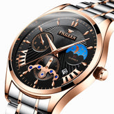 Vendor: FNGEENFNGEEN 5606 Men Luminous Casual Quartz Watch - Between Rose Gold Rose Shell Black Surface1. Watch model: 56062. Watch movement: quartz movement3. Watch diameter: 42 mm4. Watch thickness: 11 mm5. Strap width: 20 mm6. Strap length: 260 mm7. Watch weight: 100 grams8. Case material: metal9. Strap material: leather or steel10. Mirror material: tempered glass mirror11. Special functions: calendar12....