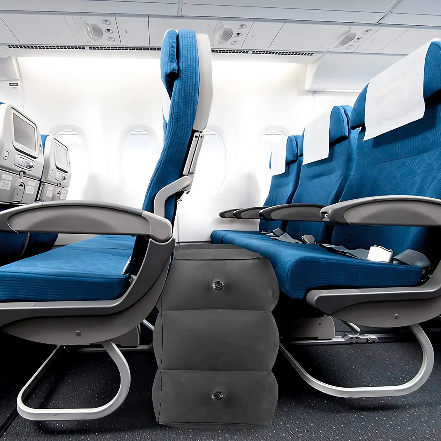 Airplane Foot Rest Travel Foot Rest Pillow Inflatable Travel Foot Rest for Airplanes Adjustable Height 3-Layer Ergonomic Folding