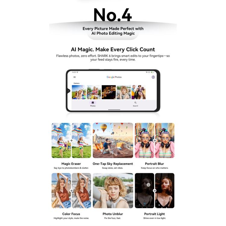 6. Display: 6.88-inch HD+IPS, 720x1640 Resolution, 120Hz Refresh Rate, 89.7%, 20.5:9