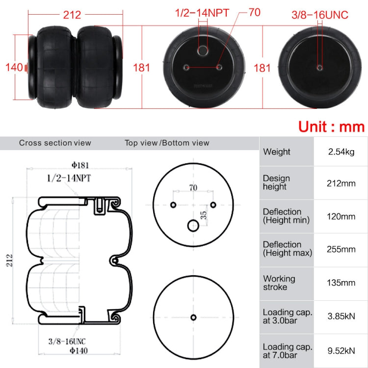 8. Working stroke: 135mm.
