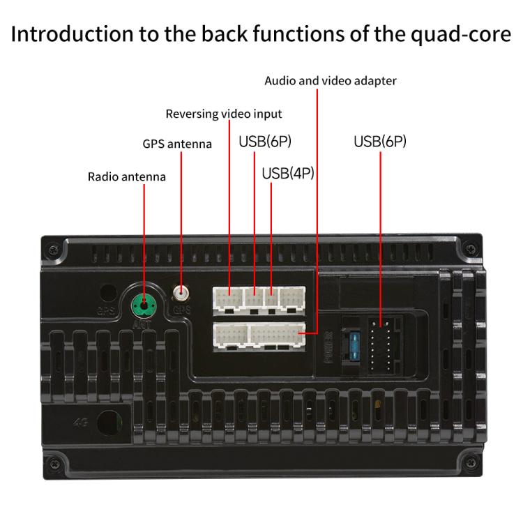 13. Support mobile phone interconnection, video playback warning, steering wheel control (support button learning), USB interface (USB1 4P, USB2 6P, CarPlay connection can only use 4P port, Android auto connection can be used), driving recorder (USB signal input), reset button