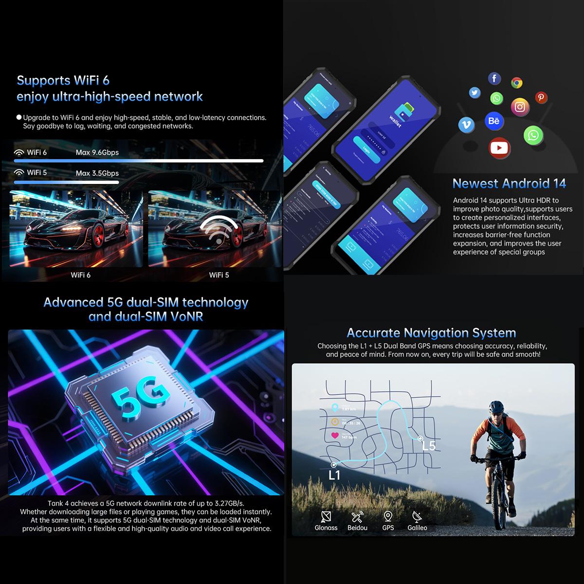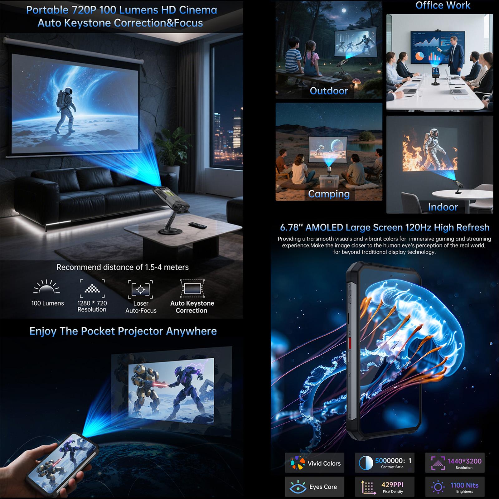 Unihertz 8849 Tank 4 Night Vision Projector Rugged Phone, 12GB+512GB, 6.78 inch Android 14 Dimensity 7300 MT6878 Octa Core, Network: 5G, NFC