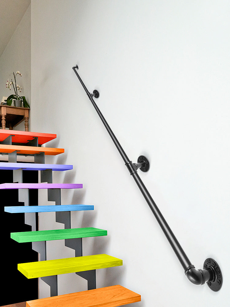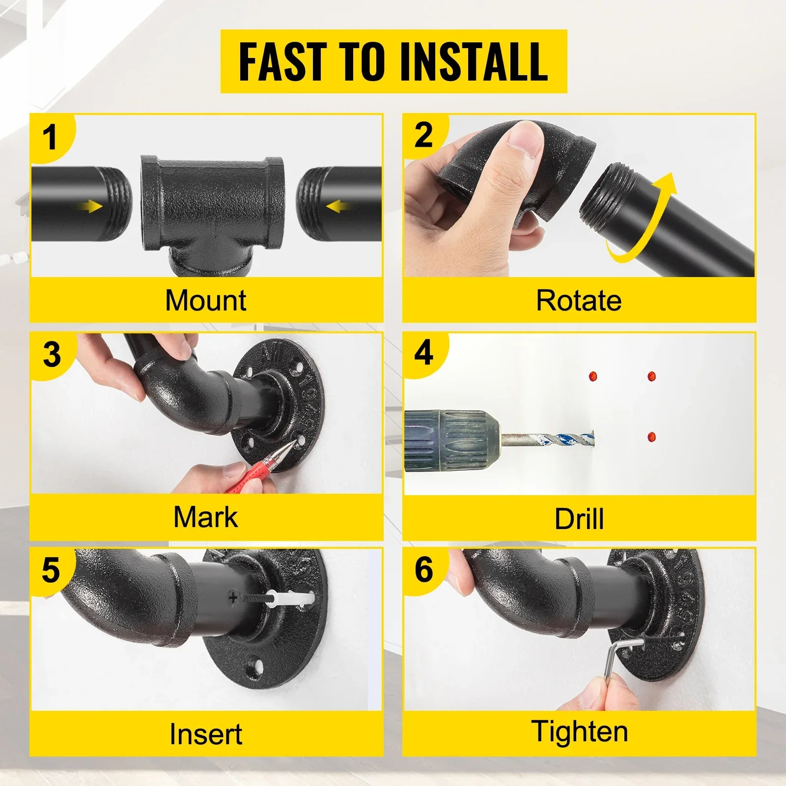 VEVOR 2-13ft Secure Pipe Stair Handrails Staircase 440lbs Handrails Carbon Steel For Wall Mount Stairs Indoors And Outdoor Black
