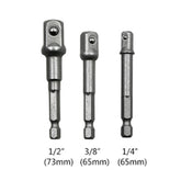 Vendor: Mira Sales3 PCS/Set Socket Bit Extension Bar Hex Shank Adapter Drill Nut Driver Power Drill Bit(1/4, 3/8, 1/2 inch), Length:65-73mm1. Chrome vanadium steel suitable for heavy duty impact drivers. Spring loaded ball bearing on head holds sockets securely. 2. This set is perfect for your impact driver or drill, and allows you to replace your ratchet with a power tool. 3. Suitable for...