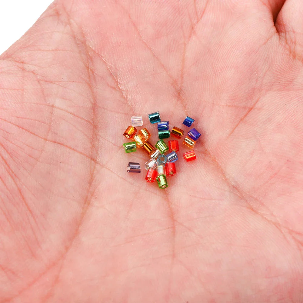 1000/1800Pcs 2mm Hexagon Czech Glass Cylindrical Loose Small Seed Needle Beads for DIY Bracelet Necklace Jewelry Making Supplies