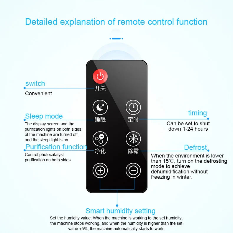 In the case of laboratory data temperature of 30℃ and humidity of 85, the maximum dehumidification capacity is about 1L of water in 24 hours.