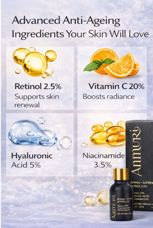 Unlock youthful vibrancy with Ammuri’s Retinol Supreme 2.5% Serum. Discover why this serum is a standout in anti-aging skincare. Visit Ammuri Beauty and integrate this exceptional retinol serum for anti-aging into your routine today.