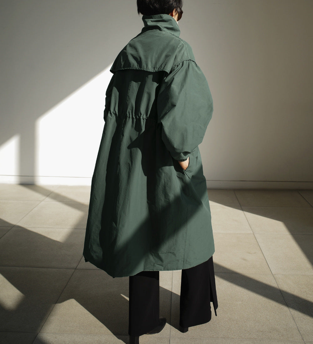 Autumn New Long Windbreaker Korean Style Stand Collar Drawstring Waist-controlled Long Sleeves Loose Trench Coat
