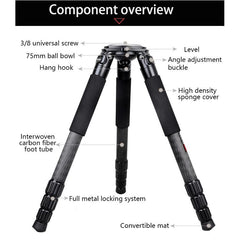 BEXIN ST424C Rugged Camcorder Photographic Carbon Fiber Big Tripod, Max Tube: 40mm, ST424C