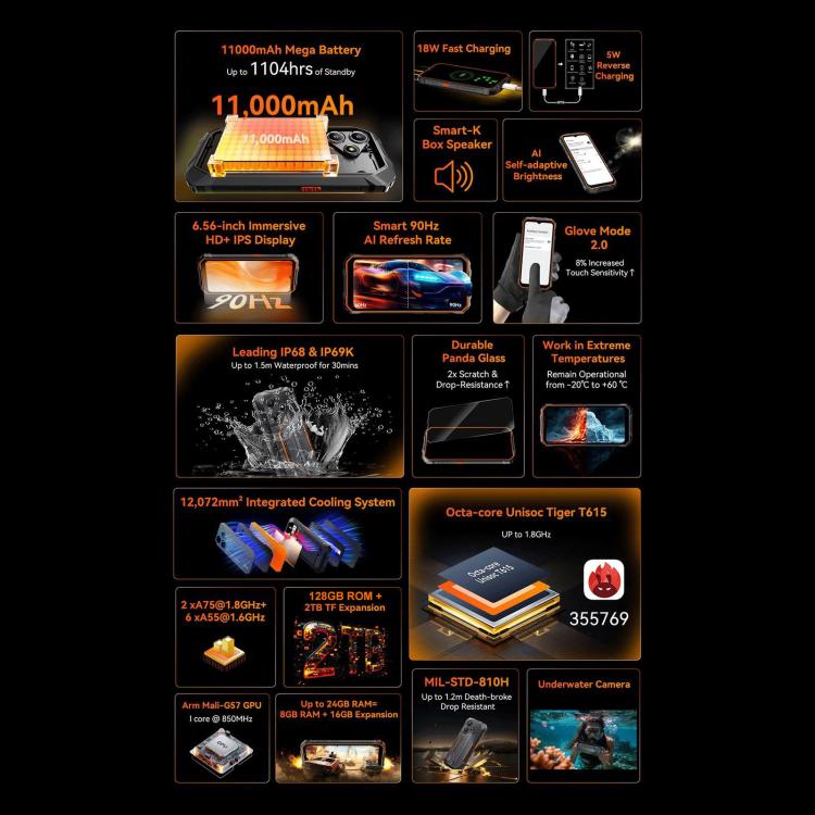 1. CPU: Unisoc UMS9230E T615, octa-core, 2 x A75 1.8GHz + 6 x A55 1.6GHz