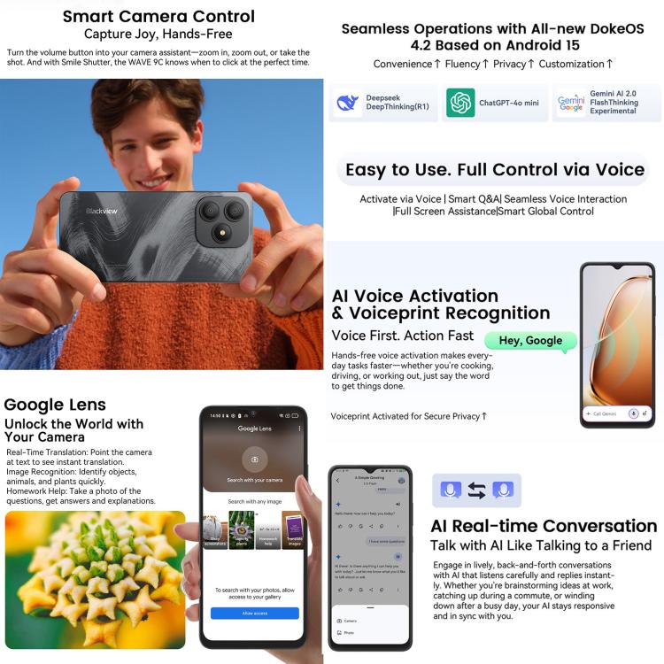 Blackview WAVE 9C, 4GB+128GB, 6.56 inch Android 15 Unisoc T603 SC9863A Octa Core, Network: 4G, OTG