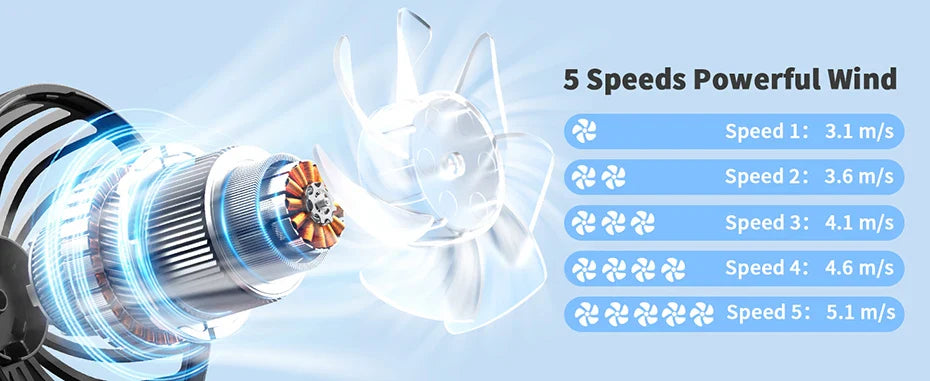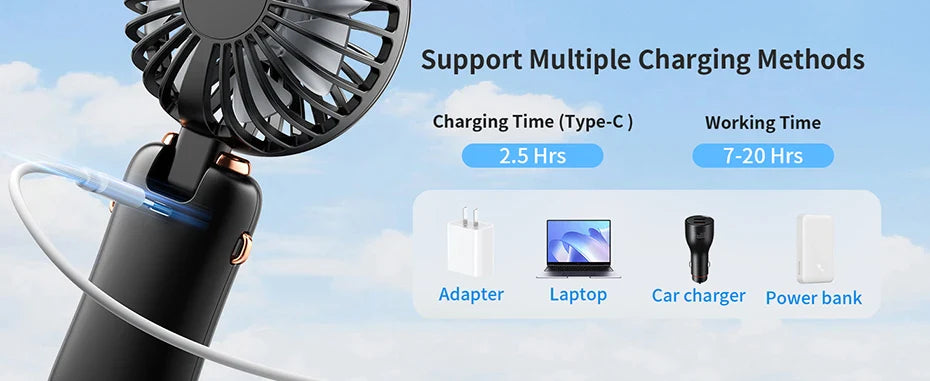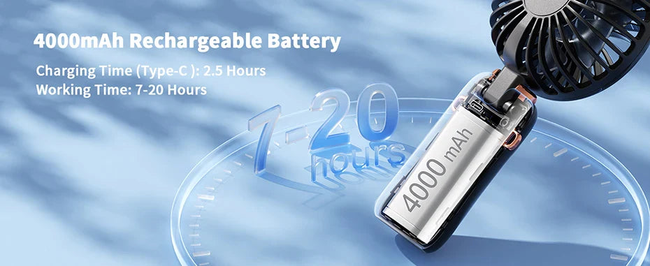 coldsky Portable Handheld Fan 4000mAh Battery Operated Fan 5 Speed with LED Display Handheld/Neck/Desk 3 in 1 Personal Small Fan