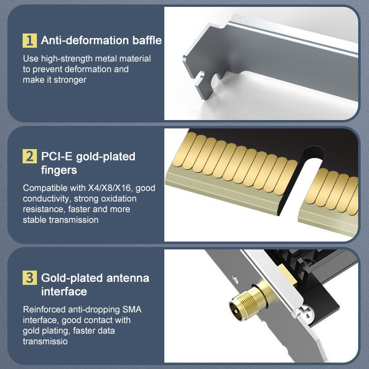 1. Suitable for desktop computers 2. Support 2.4GHz/5.8GHz/6GHz tri-band, signal transmission road is smoother 3. The transmission...