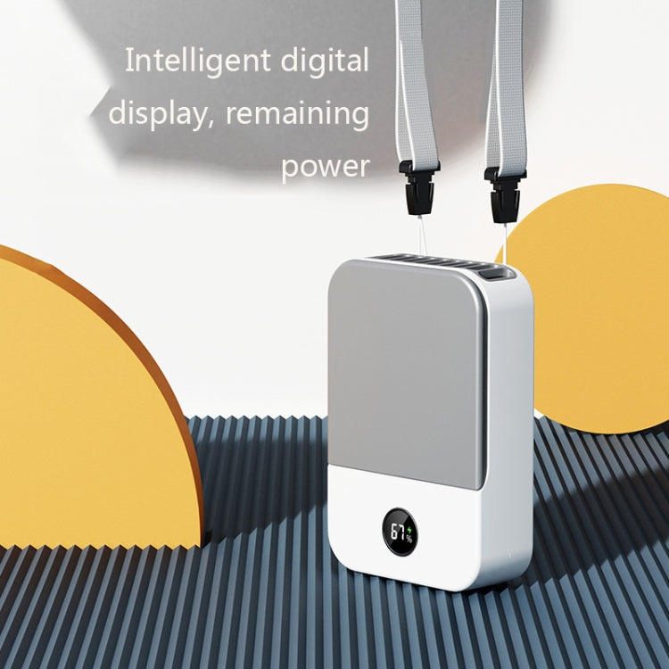 DQ205 Mini ventilador de cuello colgante de verano USB portátil para estudiantes, silencioso, de viento fuerte, sin aspas, blanco, azul tibetano