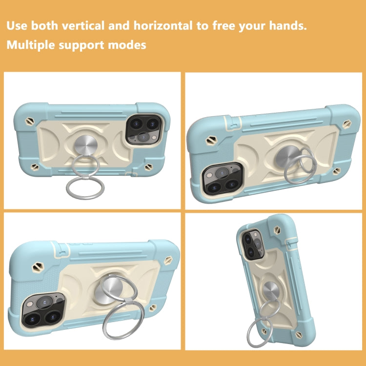 Funda protectora de silicona y PC a prueba de golpes con soporte de doble anillo para iPhone 13 Pro Max