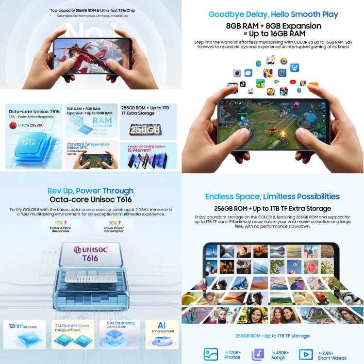 1. CPU: Unisoc T616 de 12 nm, ocho núcleos