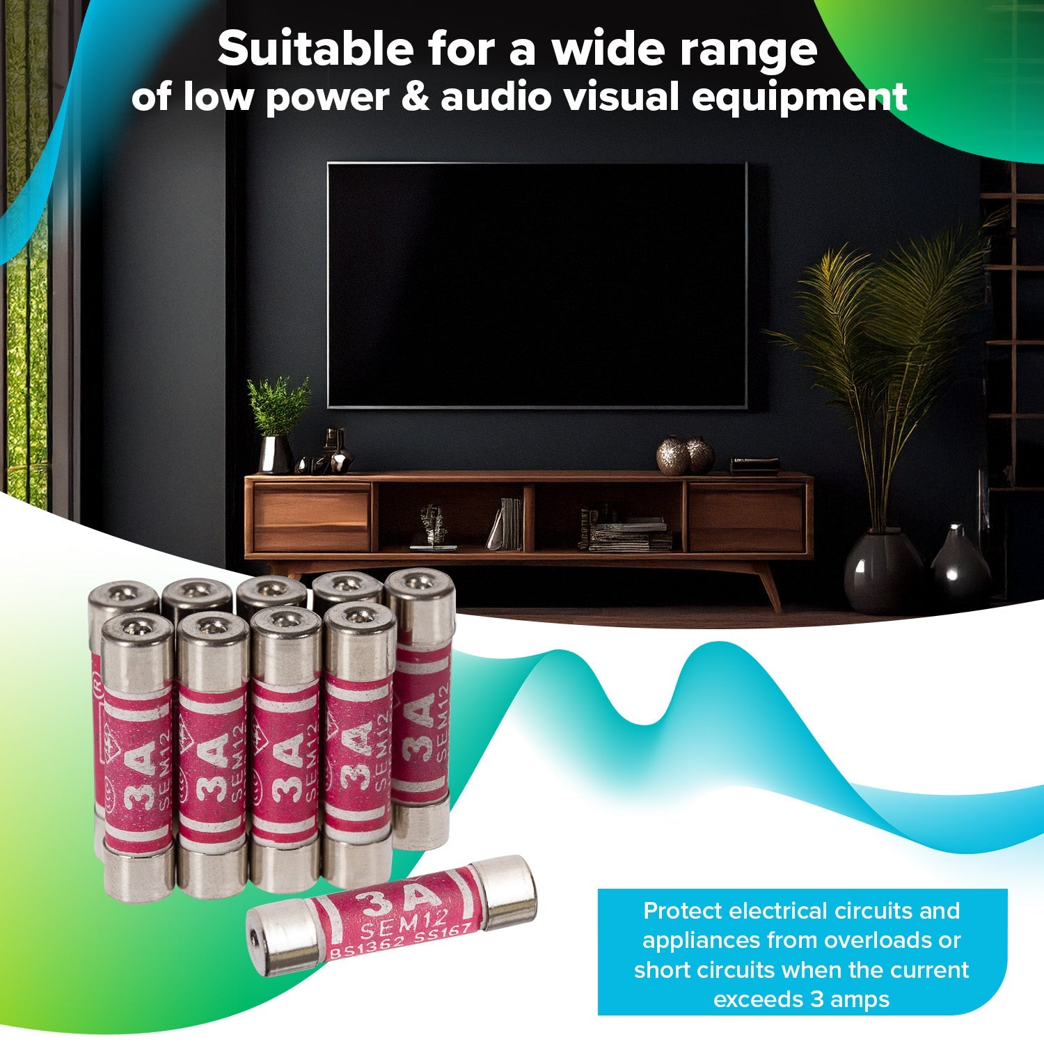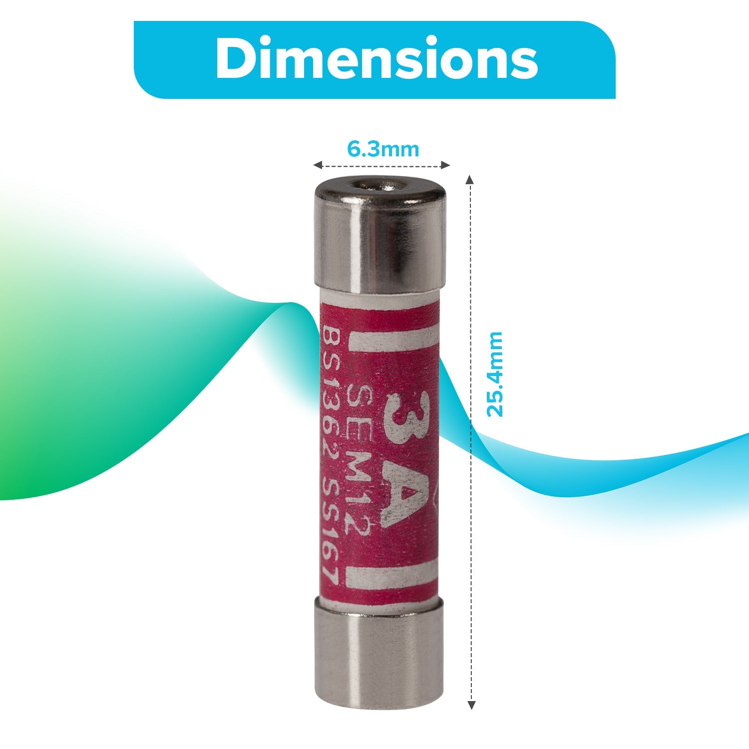 These Maplin 3 Amp Plug Fuse BS1362 25.4 x 6.4mm - Pack of 10 are suitable for a wide range of electrical equipment and domestic appliances.