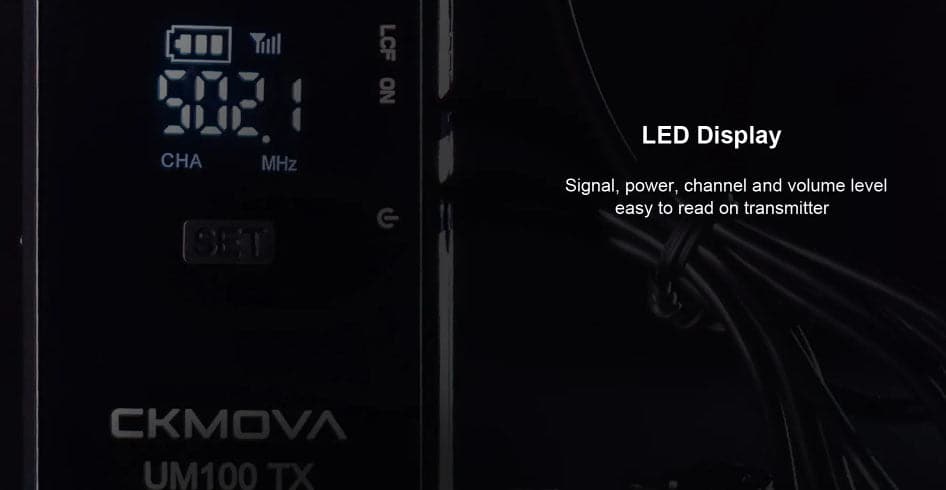 The transmitter and receiver have 20 channels available and auto-pair for quick and easy operation. Signal, power, channel and volume level are shown on the transmitter's easy to read LED Display.