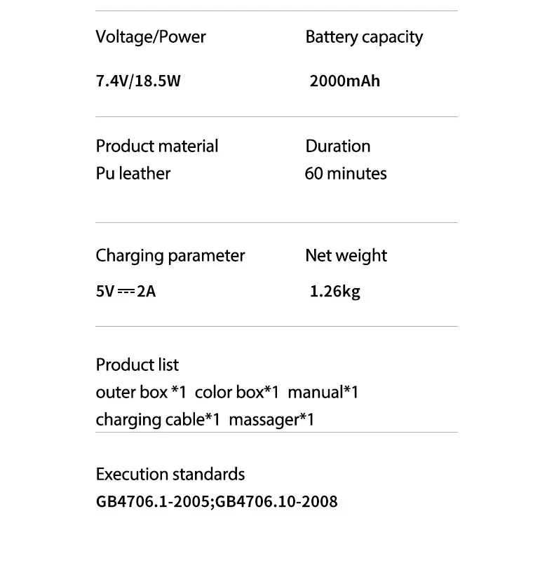 SPECIFICATIONSBrand Name: JINKAIRUIChoice: yesElectronic: YesHign-concerned Chemical: NoneIs Batteries Included: YesItem Type: Massage & RelaxationModel Number: P11Origin: Mainland China Leer más...
