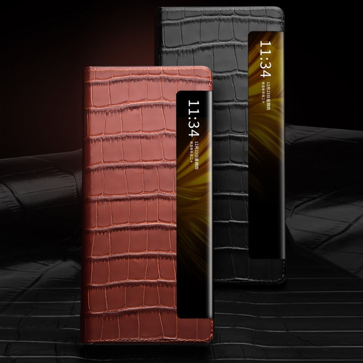 QIALINO Crocodile Pattern Side Window View Genuine Leather Phone Case