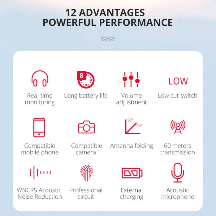 7. Adopt WNCRS acoustic environment noise reduction technology, which can suppress environmental noise and wind noise.