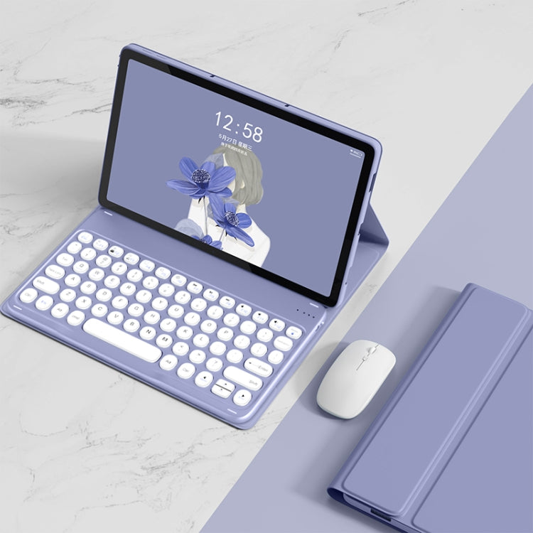 YM-LX106 Round Key Detachable Bluetooth Tablet Keyboard Leather Case with Mouse