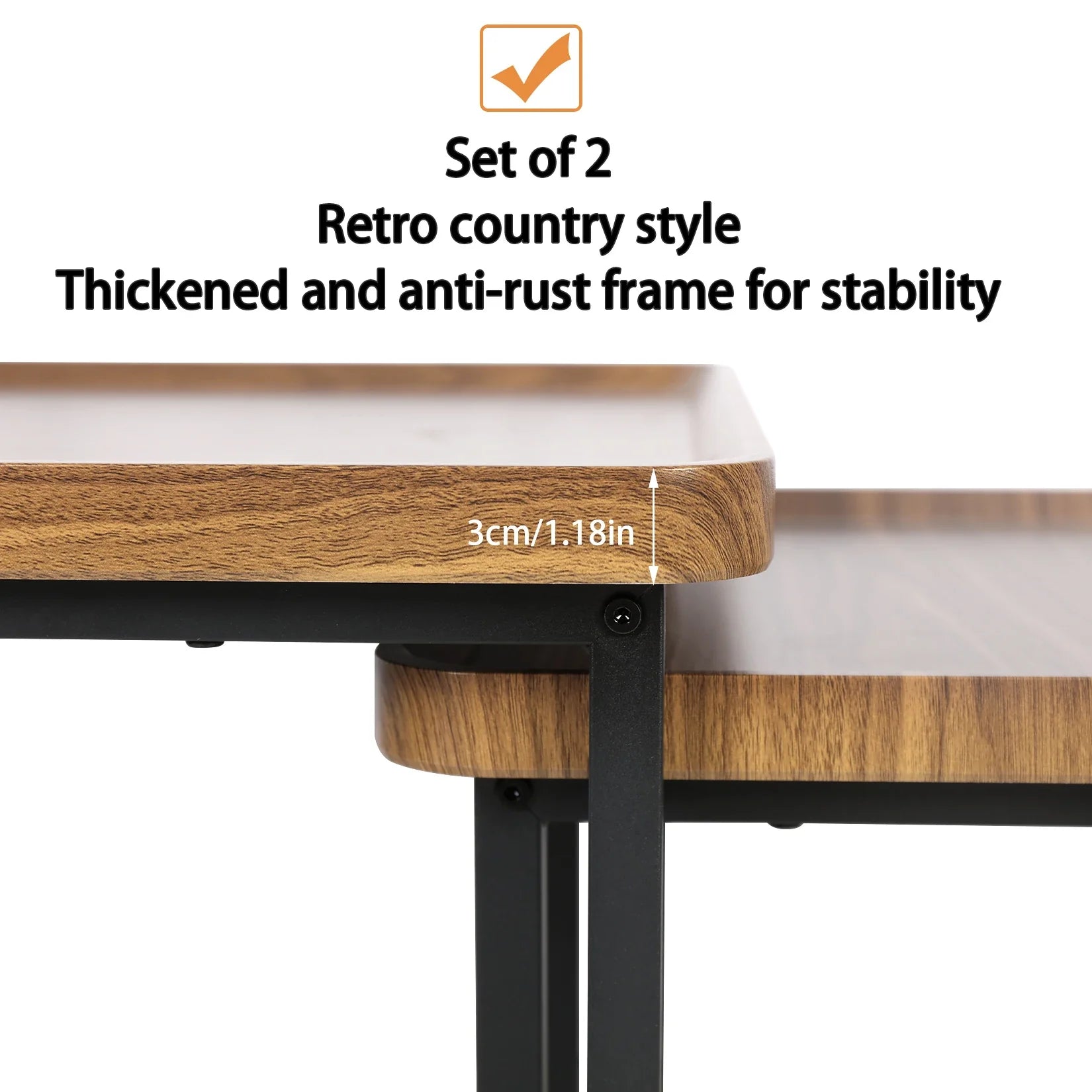 2PCS Industrial-inspired Coffee Table Set Stacking Vintage Side End Table Space Saving Living Room Furniture