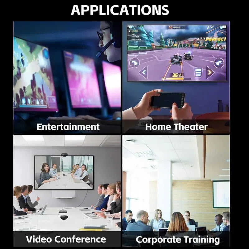 - Transmits both audio and video, supports video resolutions up to 1080p.