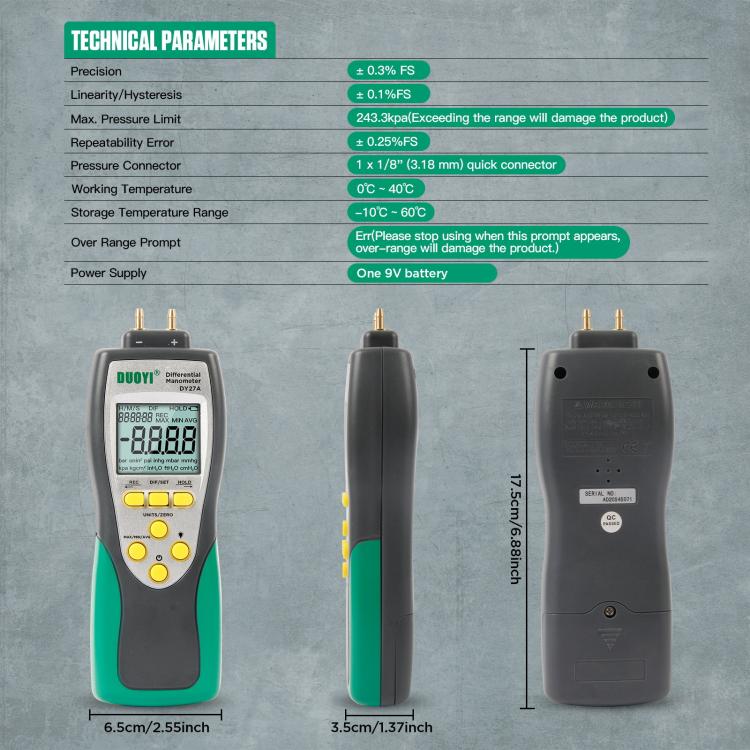 DUOYI Digital Brake Vacuum Pump Measuring Gauge Differential Pressure Gauge