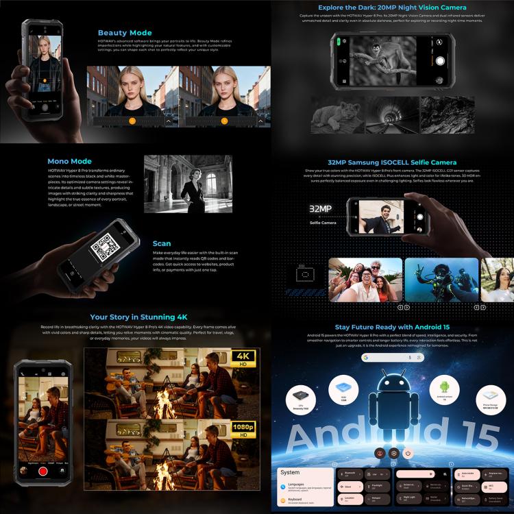 HOTWAV Hyper 8 Pro Rugged Phone, 12GB+512GB, 6.6 inch Android 15 MediaTek MT8791 Dimensity 7050 Octa Core, Network: 5G, OTG, NFC