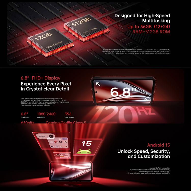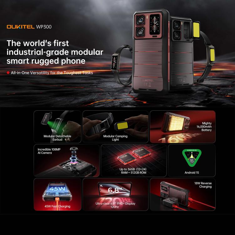 Oukitel WP300 Rugged Phone with Watch, 12GB+512GB, 6.8 inch Android 15 MediaTek Dimensity 7050 Octa Core, NFC, OTG, Network: 5G