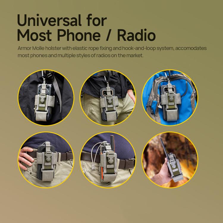 4. Universal for Most Phone / Radio: Armor Molle holster with elastic rope fixing and hook-and-loop system, accomodates most phones and multiple styles of radios on the market.