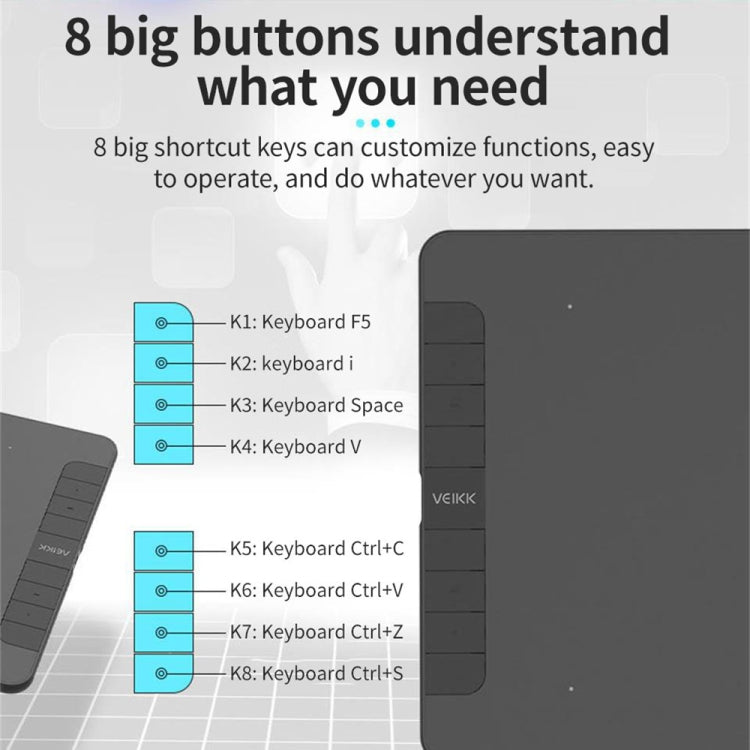 5. VEIKK dedicated passive pen, no need to charge, no battery, customizable shortcut keys, more convenient to use, 8192 pressure sensitivity, more delicate pen tip