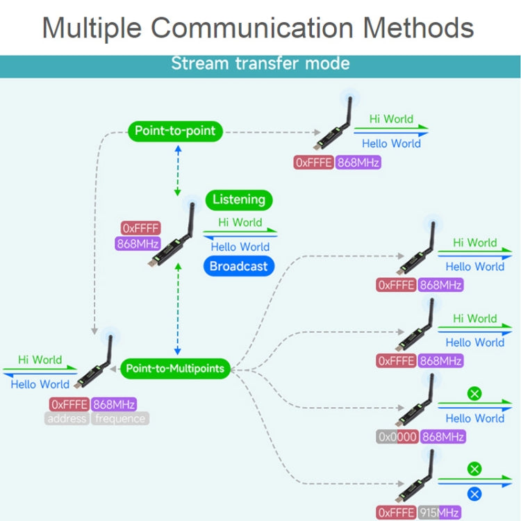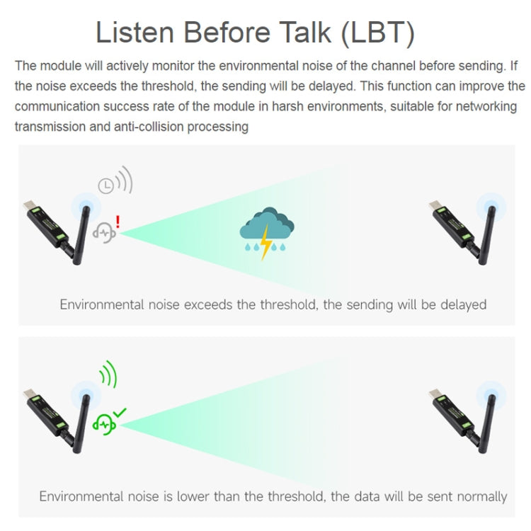 4. Support LBT transmission, RSSI output, AT command set setting