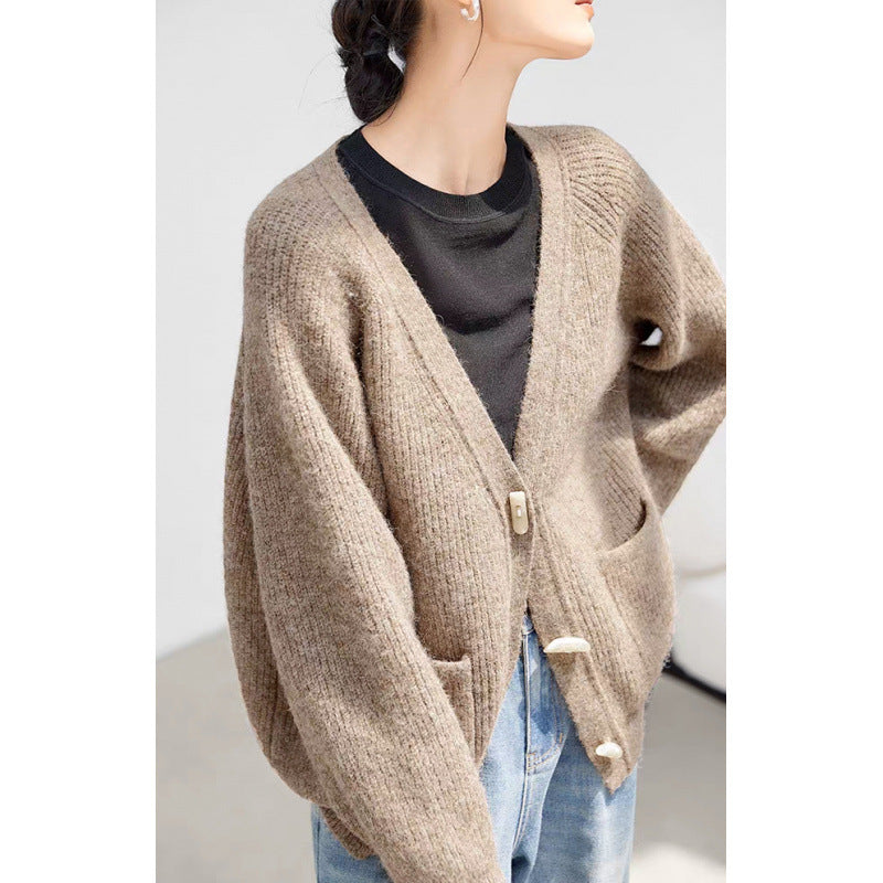 Winter New Horn Button Loose Sweater Coat