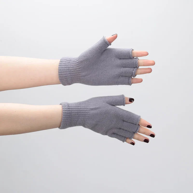 1pair Black Short Half Finger Fingerless Knit Wrist Glove Winter Warm Stretch Work Gloves for Women and Men Cycling Accessories