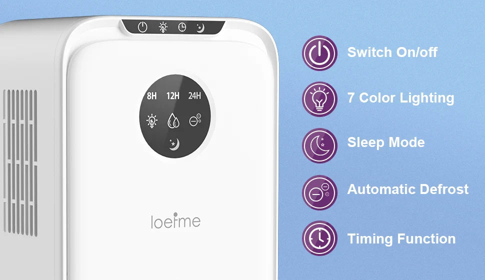 Function: Automatic Bucket Full Shut-Off,Automatic Defrost,LED Display,Removable Water Tank,Washable Air Filter