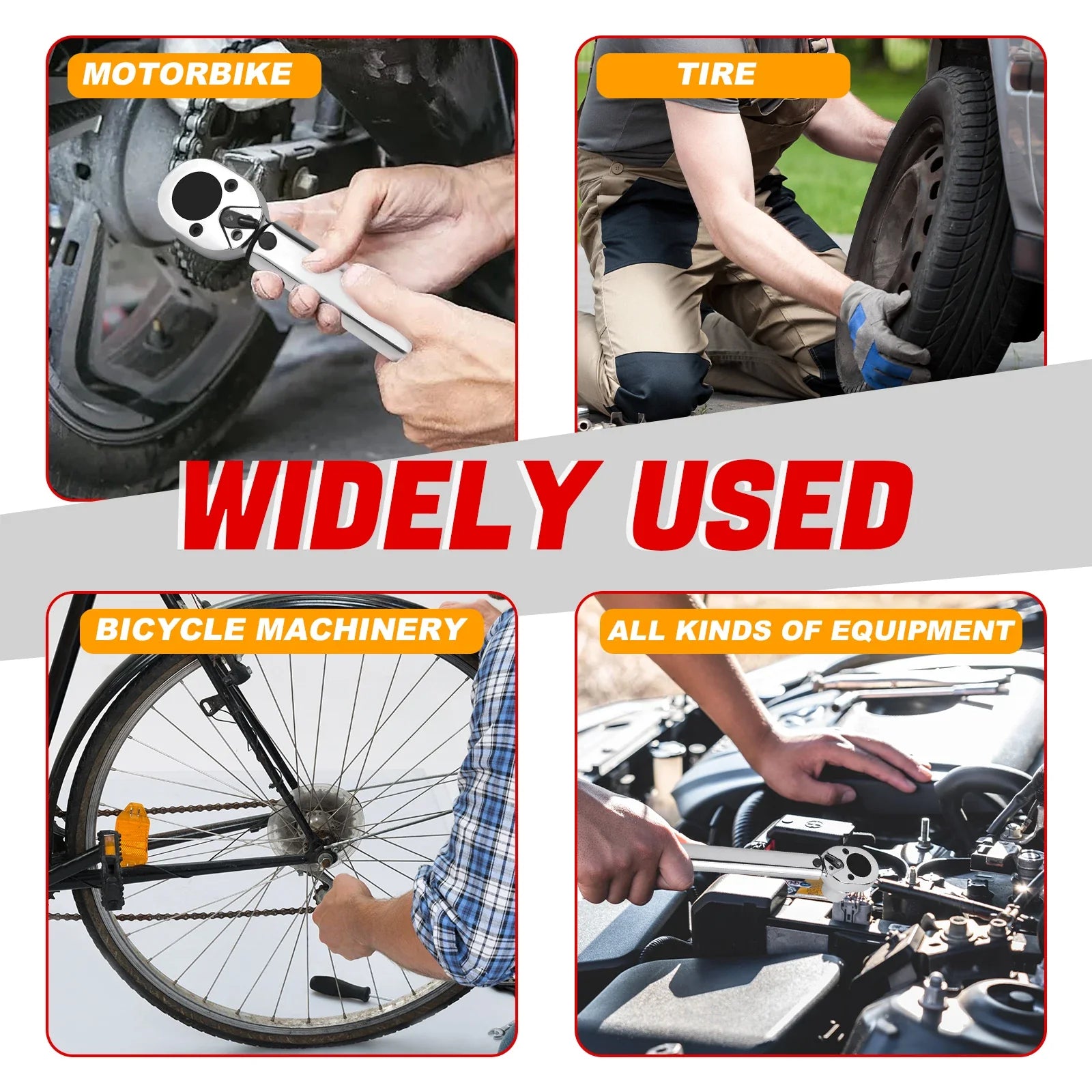 28-210Nm Ratchet Torque Wrench 1/2" Wheel Bolt Wheel Nut Wrench 460mm with Extension & Wheel Bolt Sockets 17mm/19mm/21mm & Case