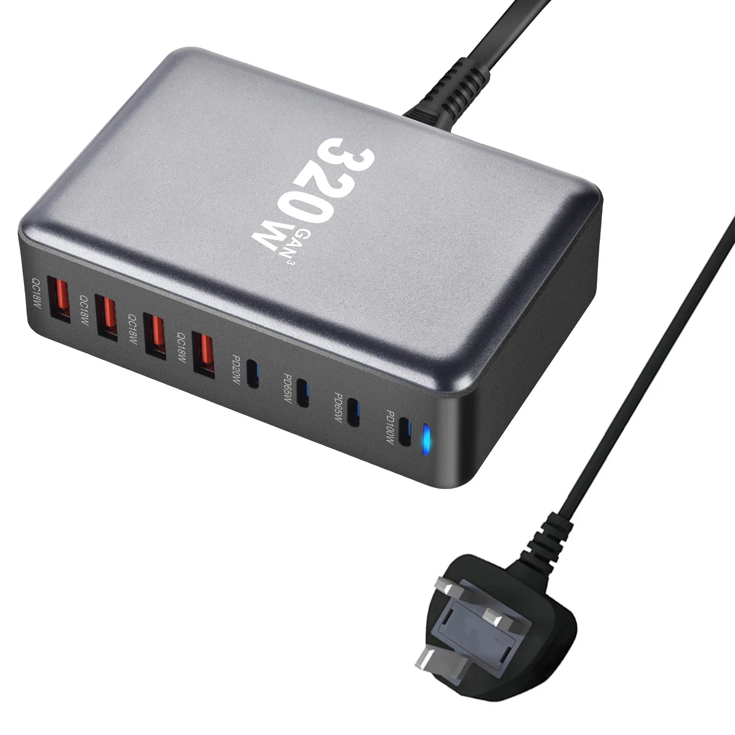 320W GaN Charger USB C Fast Desktop 8-port USB Type C PD Charger Fast Charge 3.0 USB Type C Fast Charger for iPhone15 14 Samsung