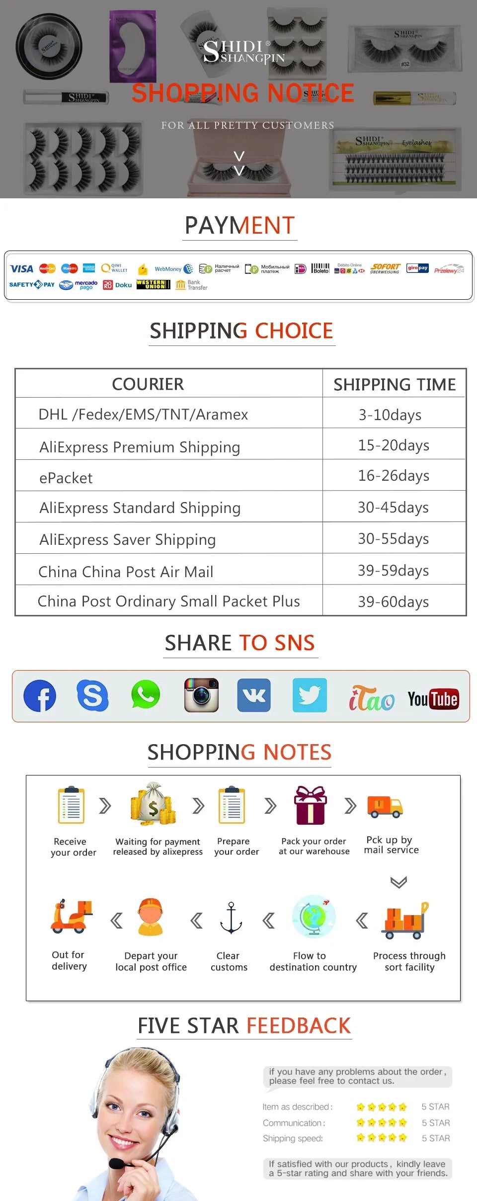 All products are shipped directly from our warehouse. We shall keep up to date at every level from processing until successfully delivered.
