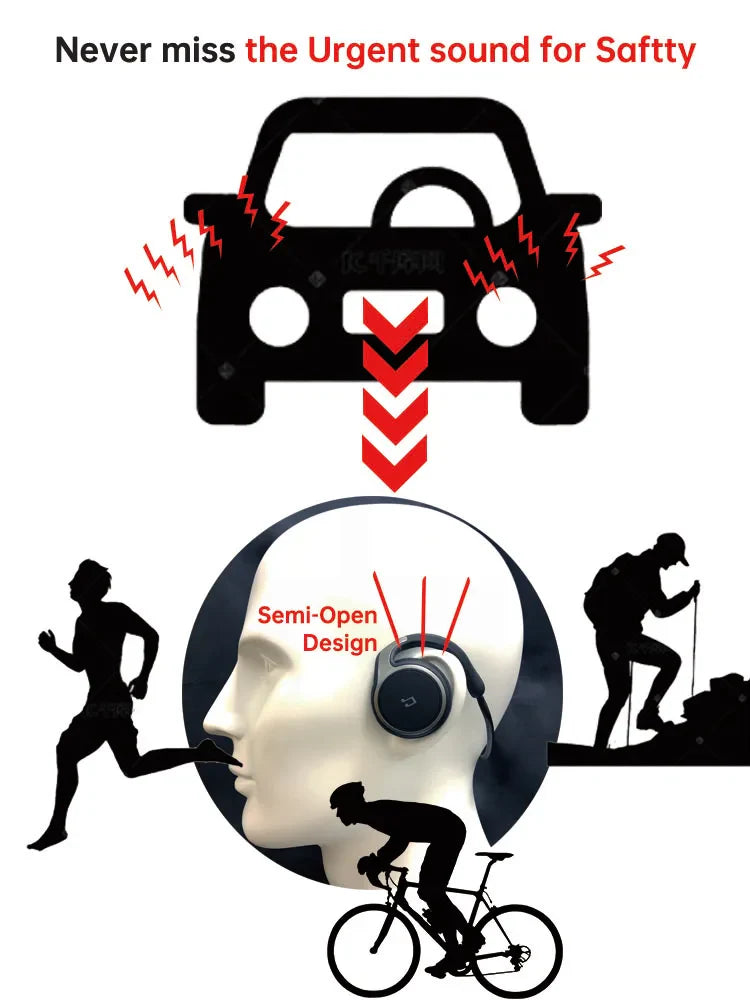 Thanks to the Semi-open design,you can hear the urgent sound from the outside like Whistle from the car to avoid accident when you are doing outdoor sports like Runing,Cycling,Hiking .