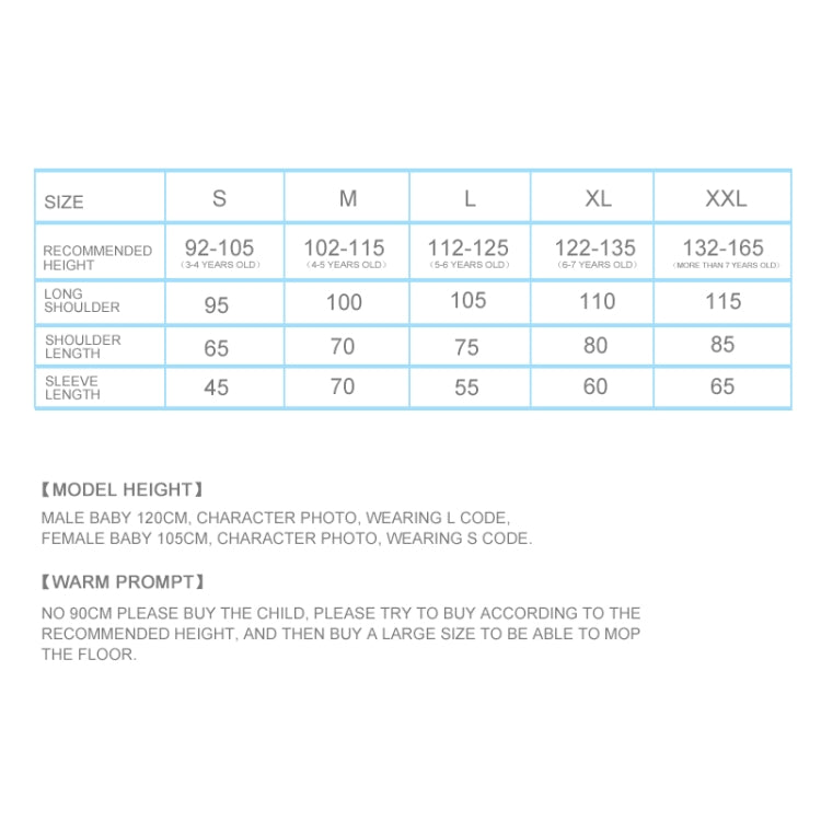 2.Size and weight: we provide size from S to XXL (length: 95-115cm), for children height from about 90 to 165cm, weight is about 300g
