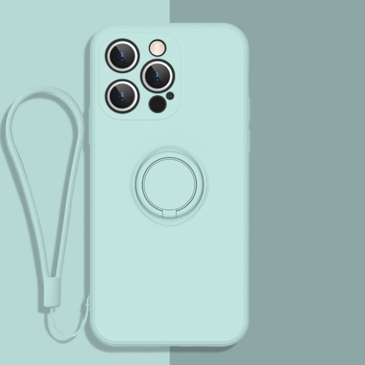All-inclusive Liquid Silicone Phone Protective Case with Ring Holder & Lanyard, For iPhone 13 Pro