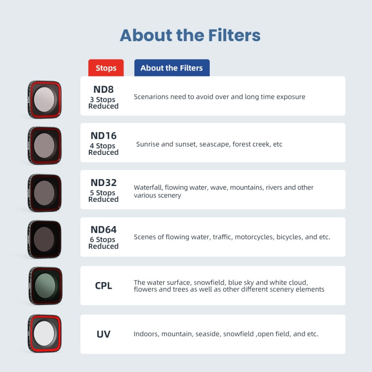 6. The main role of the ND filter is to reduce the amount of light into the lens, so that the screen to reduce overexposure, lengthening the exposure time of the camera