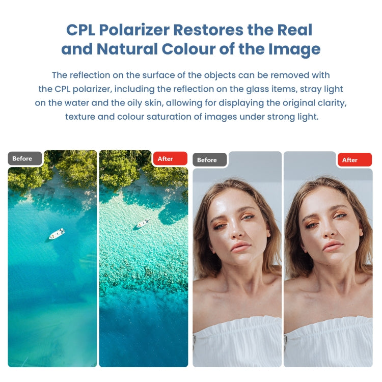 7. CPL mirror can eliminate reflections on the surface of the object, so that the object in the bright environment to restore the original clarity, texture and color saturation
