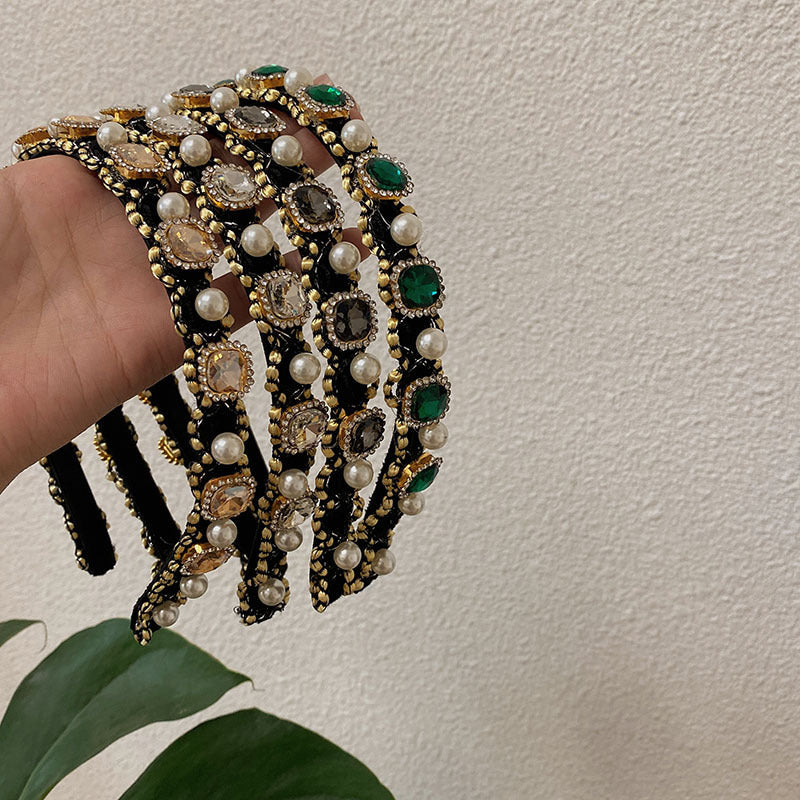 Baroque Full Diamond Pearl Thin Edges High-grade Temperament Headband