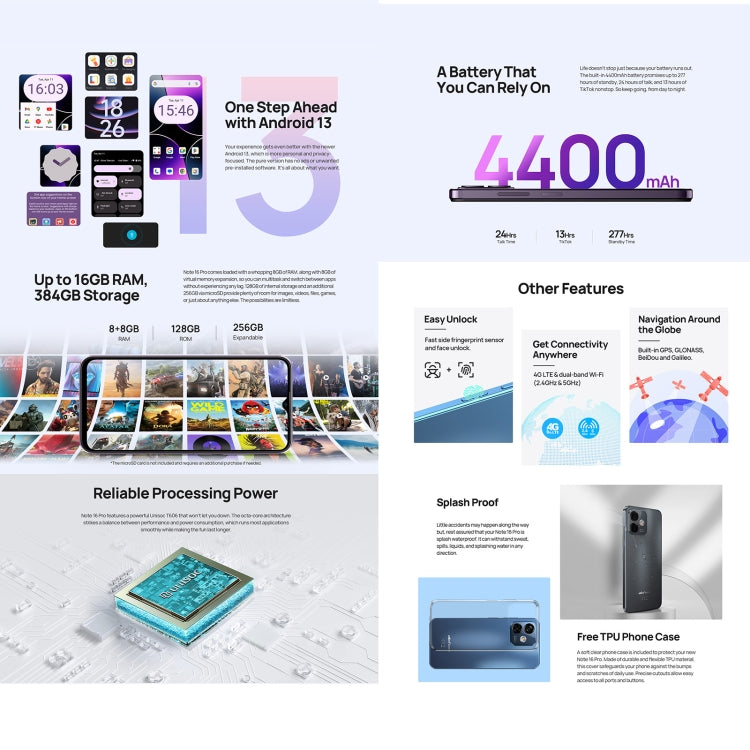 Features1. 6.52 inch 1600x720 HD+ screen, small body, wide field of vision. 2. Unisoc T606 octa core...