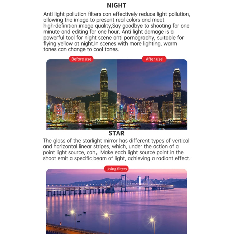 2. HD professional optical glass, with high durability and scratch resistance, multi-layer nano-coating process, can ensure clear imaging, to meet the shooting process of high pixel imaging standards