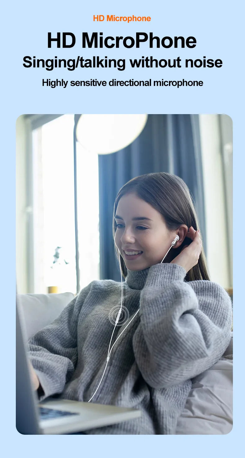 The USB C wired earbuds built-in high quality microphone for clear in-coming call, and with a flexible and easier wire remote control button, which you can freely adjust volume, wake up siri, skip songs, play/pause audio contents, fast-forward/rewind podcasts.