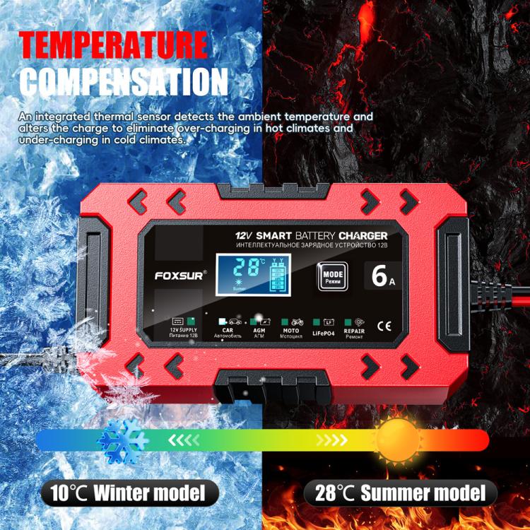 FOXSUR FBC1206F 12V 6A Car Motorcycle Battery Charger Smart Repair Multi-function Charger